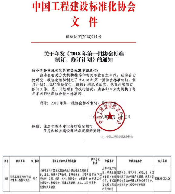 參編單位:同濟大學、清華大學、東南大學、中國城市地下綜合管廊產業(yè)聯(lián)盟、南京市裝配式鋼質綜合管廊工程技術研究中心、北京市市政工程設計研究總院