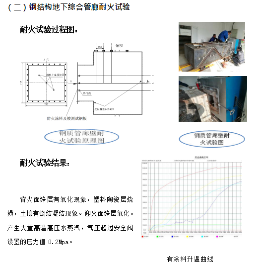 ④更為重要的是,耐火涂料只能阻止火災時鋼結構的溫度不高于 550℃,但對于鋼結構地下管廊來說情況特殊,在火災發(fā)生半小時左右,耐火涂料覆蓋的鋼結構體溫度就超過 150℃,廊體外部土壤中的水份形成高溫高壓蒸汽,其產生的次生災害有可能嚴重于火災本身。
