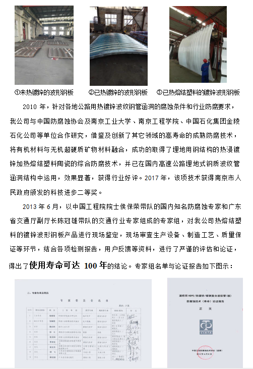 一、最早的波紋鋼綜合管廊在德國耶拿市,建于 1945 年,內部設置有蒸汽管道、給水管道和電纜,已使用 73 年,采用熱浸鍍鋅防腐,使用狀態(tài)良好,國內已經有多批專家前往考察參觀。